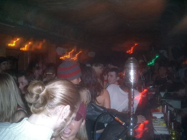 Oh it was on like Donkey Kong now! The entire night was all about getting better position… When Gina had to go to the ladies room I was her escort, and I stayed by the door like a prison guard. When she’d venture away from the table to see what was happening around the club, Angel and I would split up and comb the fields of shadows to find her each trying to get to her before the other. If I found her first, we’d resume the mating dance. If Angel found her, he’d bring her to a dark corner where they would talk while he pumped her full of alcohol. I remember at one point Angel comes up to me and asks, “Hey Red, you seen Gina?” I take a drag from the hookah pipe and hand it to him, “Here take a drag… What did you say?” Angel took the pipe (that is connected to a hose which in return is connected to a very big bong that’s set up on the table) and before he could answer, I took off! Hahahaha that was the kind of night it was. Towards the end of the night we were all in a circle dancing with our arms around each other. My arm over Brendan’s shoulder, my other arm around Gina’s waist… Beside her was Ricki, and beside Ricki was Angel. Somewhere in the middle of the dance I could feel hairy knuckles brush up against my forearms… I looked over and Angel was doing his best impression of Plastic Man! You have to laugh at that.