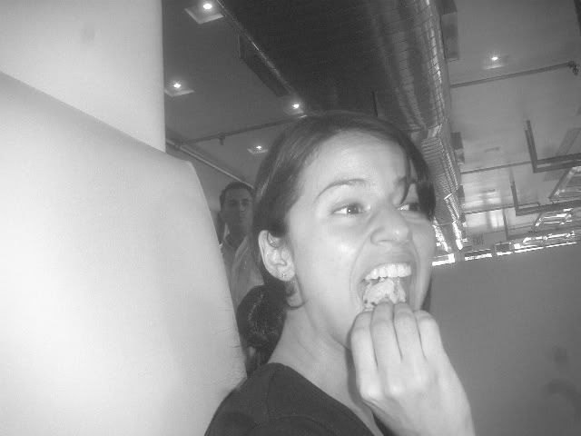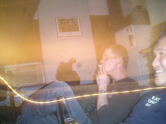 I missed the train again. This time I actually saw the doors close and the cars pull out of the station. That's always a frustrating sight. When I finally got home at 5:30am I had to sit outside on my stoop because I had accidentally left my keys at work. Luckily Kyle, Brian's old college buddy from Indiana was sleeping on my couch so I tapped on the window so he could open up. He peeked his head out of the apartment door, he must have been naked. He seemed to be mouthing the words..."One Minute" I must have been reading his lips wrong because he actually took an hour to open both doors.